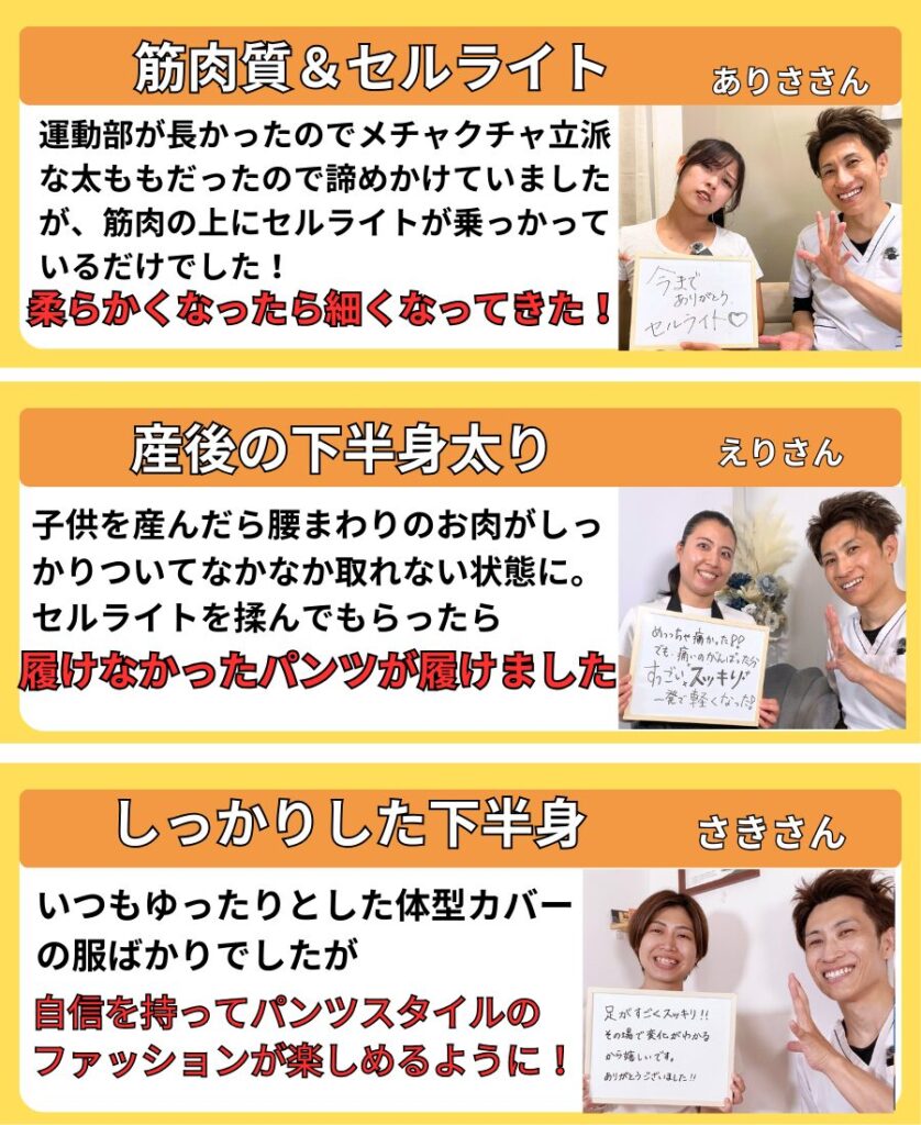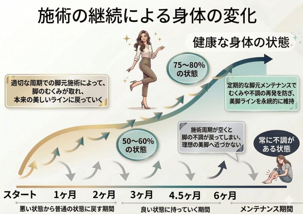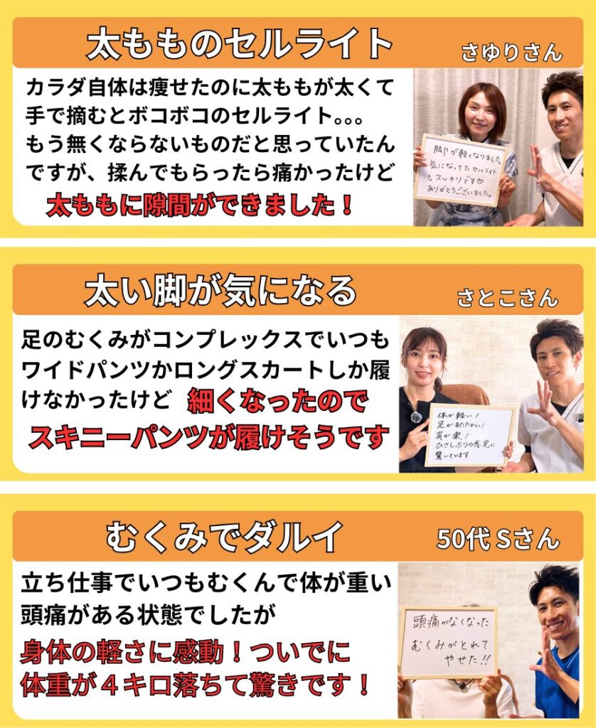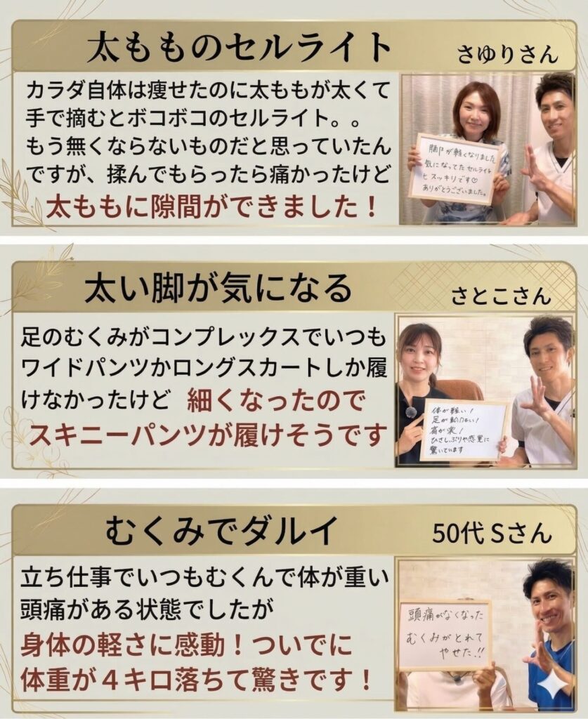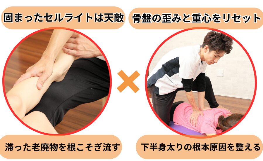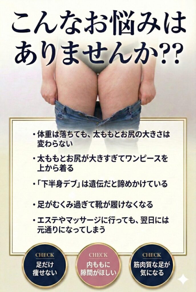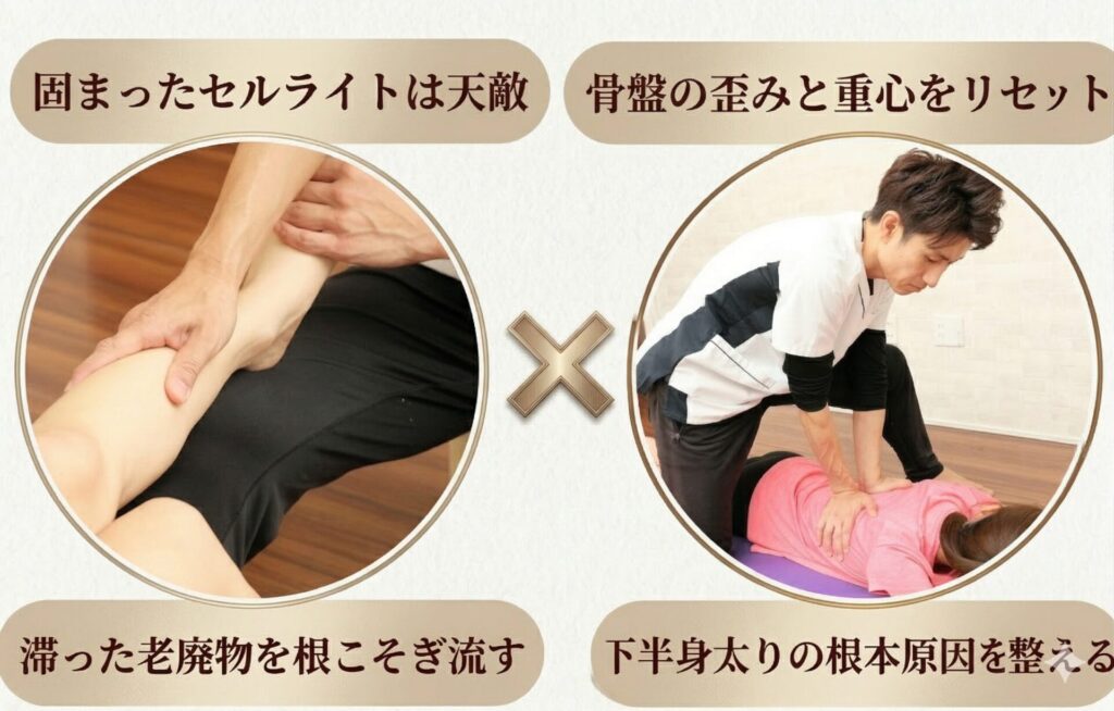 当店では 一時的に細く見せる施術ではなく、 脚が変わらなかった原因そのものにアプローチします。
