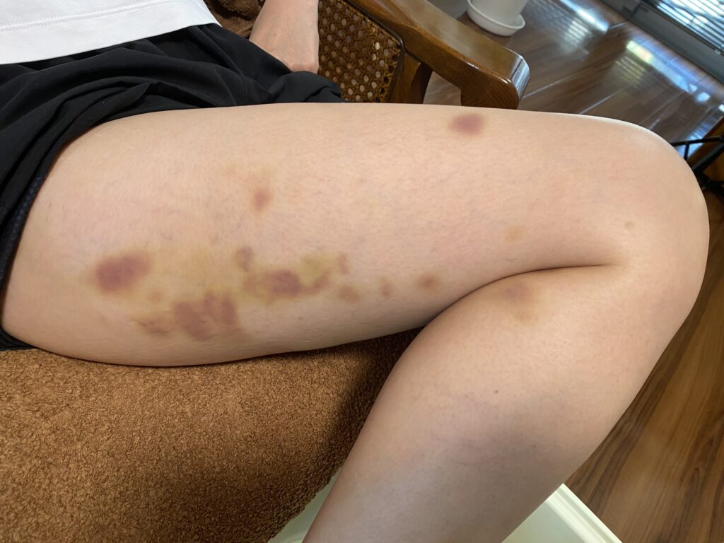 ガチガチに固まったセルライトは血管が弱っている為、人によっては青あざができる人がいます