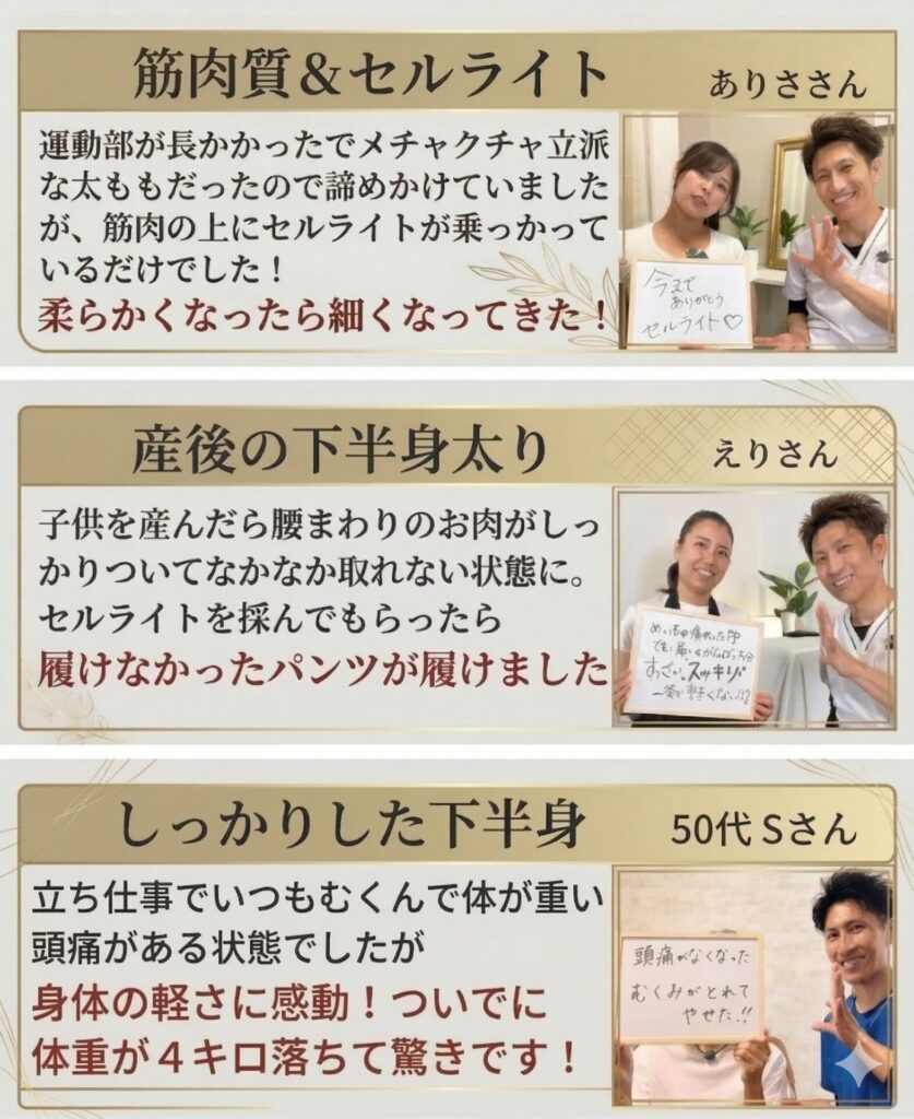 僕の提案するプランで向き合い、正しくケアをしていただければ、どんな頑固な下半身でも変化していく確信を持っています。
