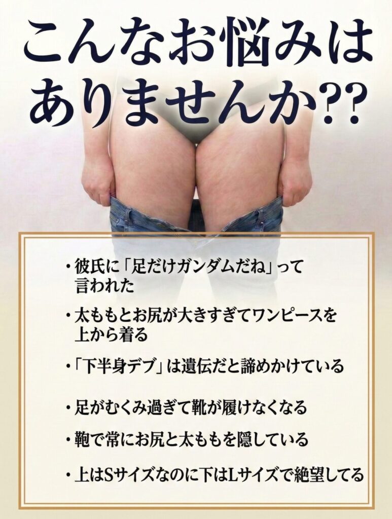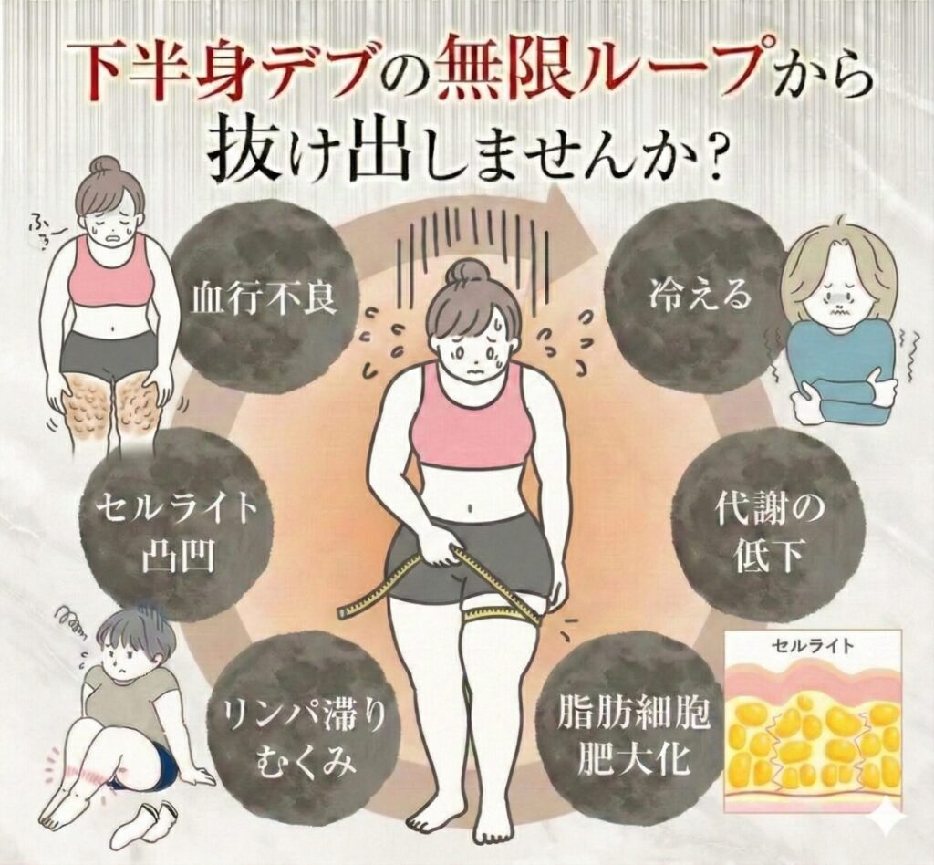 身体の汚れはどんどん溜まってむくみやセルライトを作り、下半身デブを作ってしまいます。身体を変えるなら今がチャンスです!